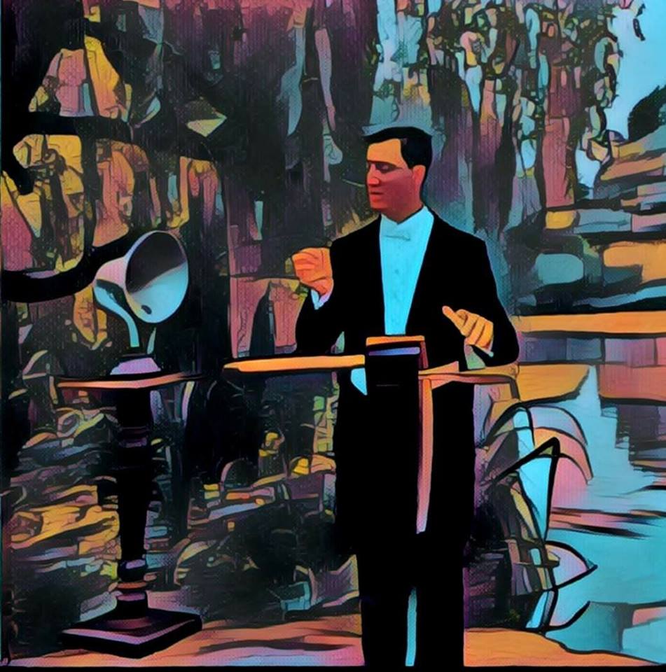 In October 1920, he noticed that one of his inventions, employing new radio technology to measure the capacitant properties of gas, was emitting a strange warbling tone: by moving his hands nearer and further from the equipment, he could pick out a ghostly melody. In this moment, the principles of the theremin were born.